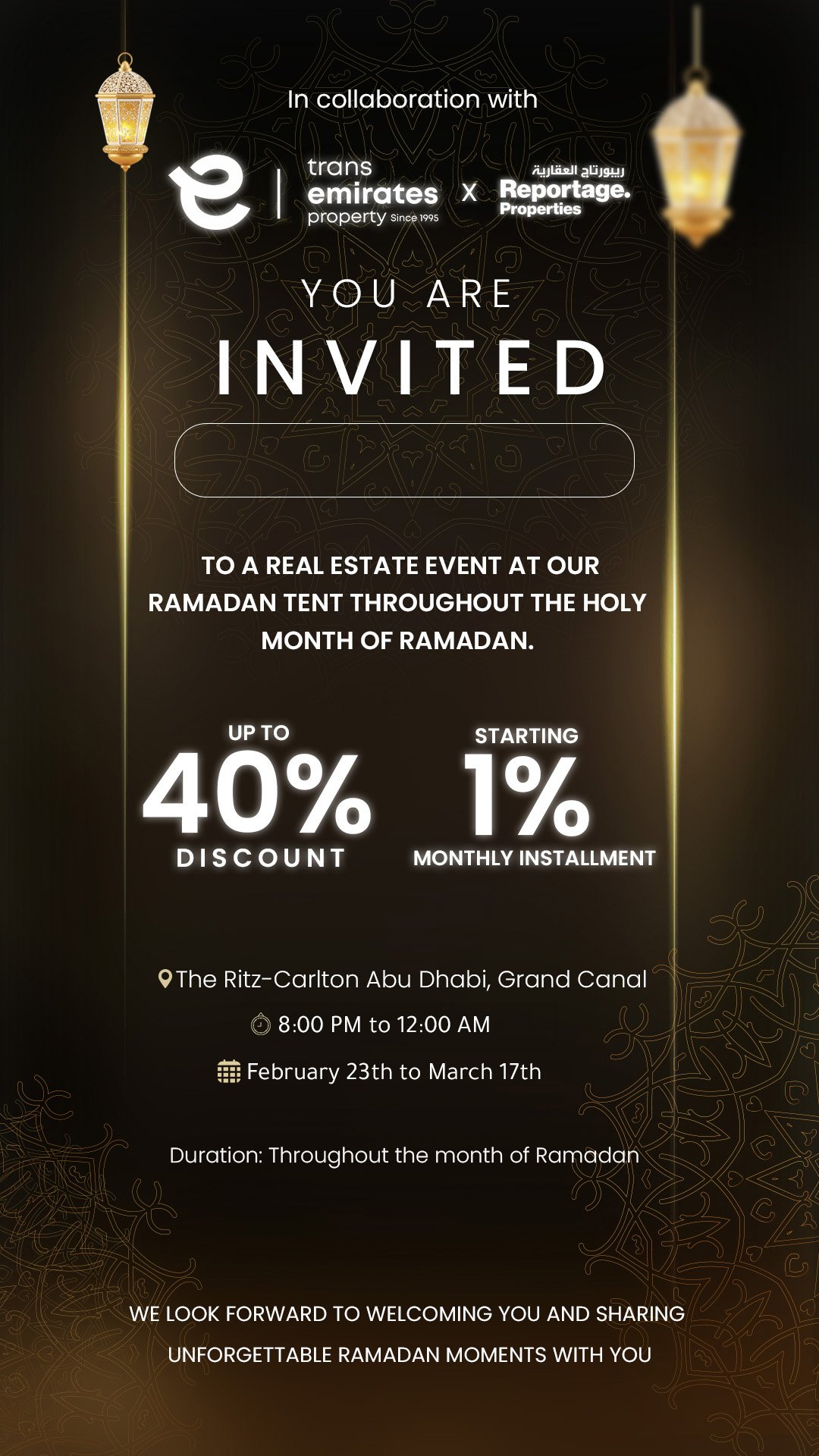 In collaboration with Reportage Properties, we invite you to an exclusive Ramadan property showcase featuring special event-only incentives.